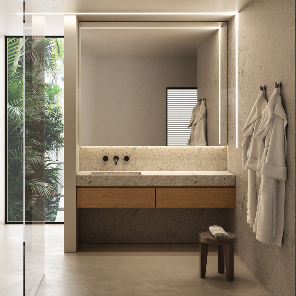 Le mobilier de salle de bains sur mesure reste également une option proposée par notre designer d’intérieur.
