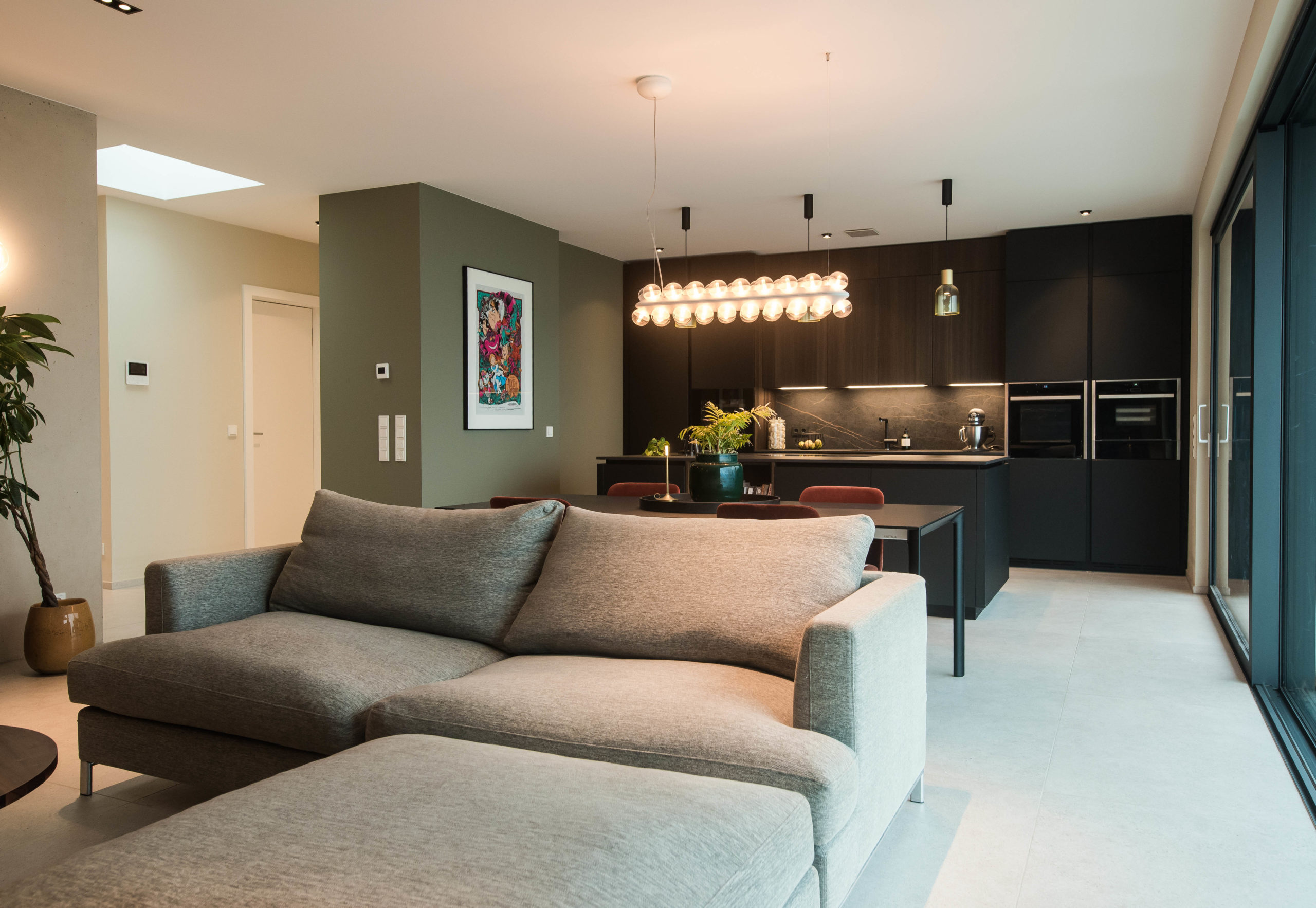 Aménagement intérieur de l’espace living d’un penthouse à Luxembourg.