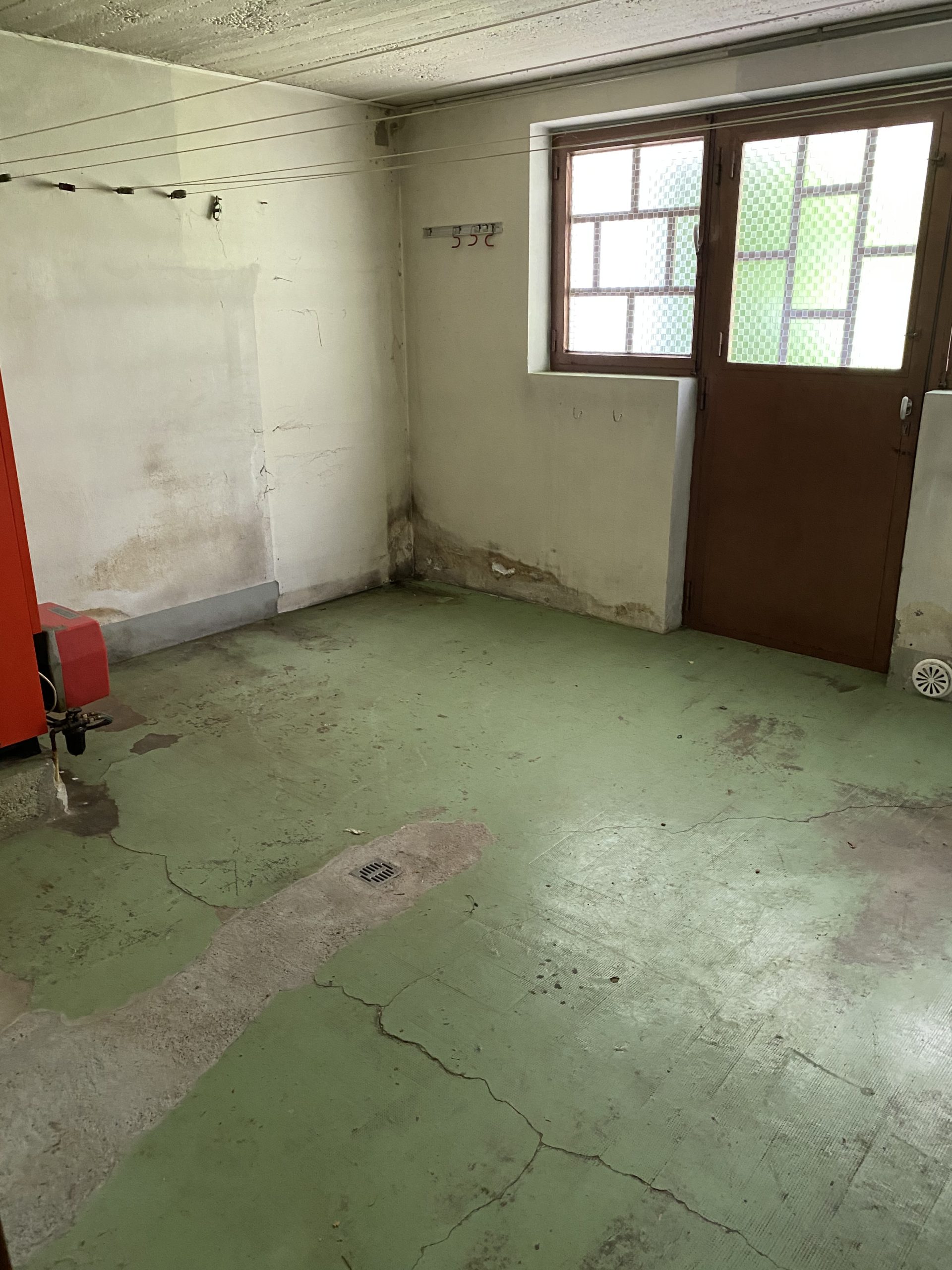 En rez-de-jardin, le hall d’entrée et des caves et l’escalier vers l’étage.