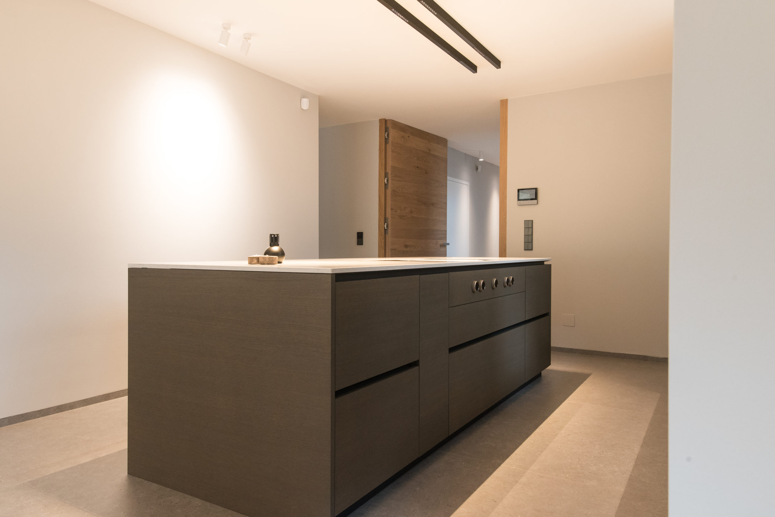 Rénovation intérieur d'une maison et création de meubles sur mesure : cuisine, mobilier salon et salle à manger, dressings, meuble tv et la chambre parentale avec sa douche dans une maison neuve à Niederanven au Luxembourg.